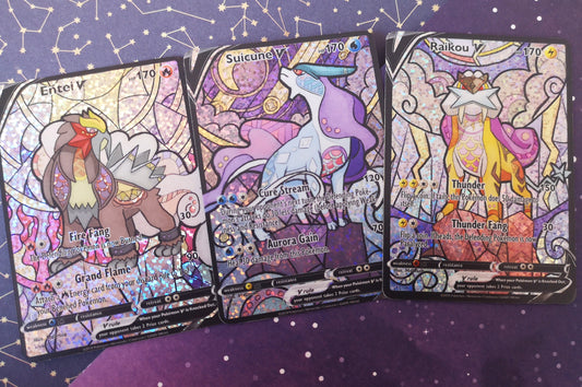 Entei Raikou Suicune glas in lood / Aangepaste holografische Pokémon-kaart / V-kaart