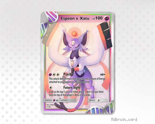 Holo Espeon + Xatu or hatterene + braixen fusion / Custom holographic Pokémon card