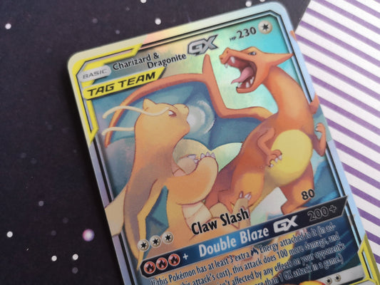 Holo Dragonite and Charizard / Custom holographic Pokémon card / tag team card