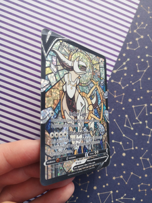 Holo Glitter Arceus / Custom holographic Pokémon card / V Card / Stained glass art