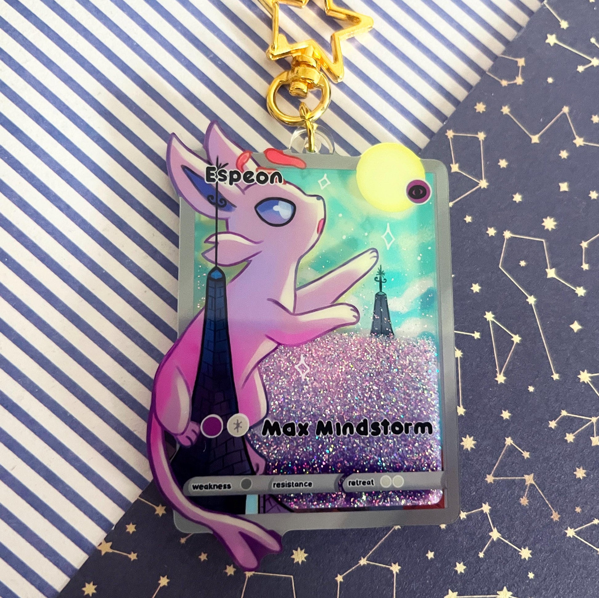 eeveelution liquid glitter charms Espeon / double sided / 8 cm /