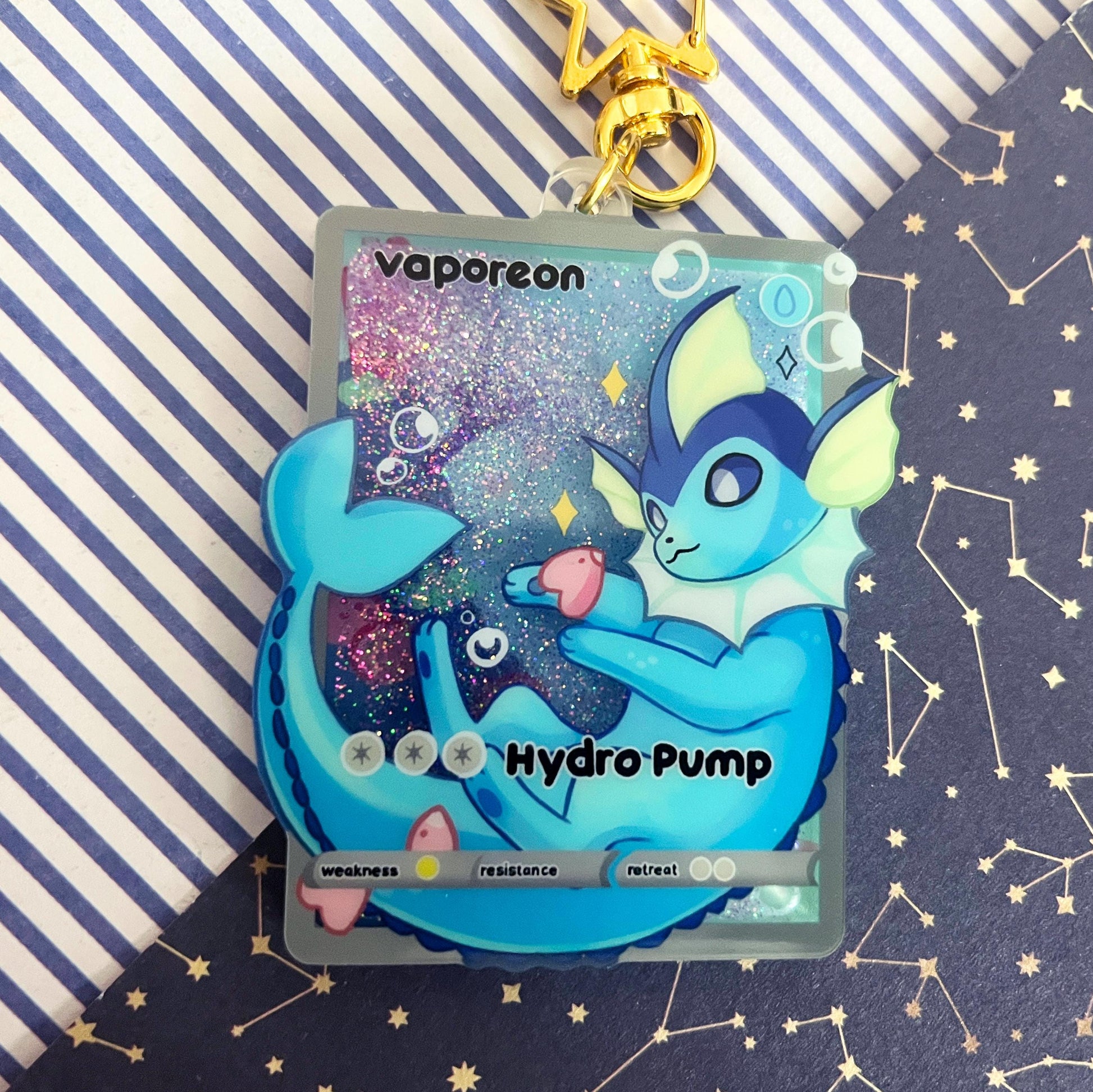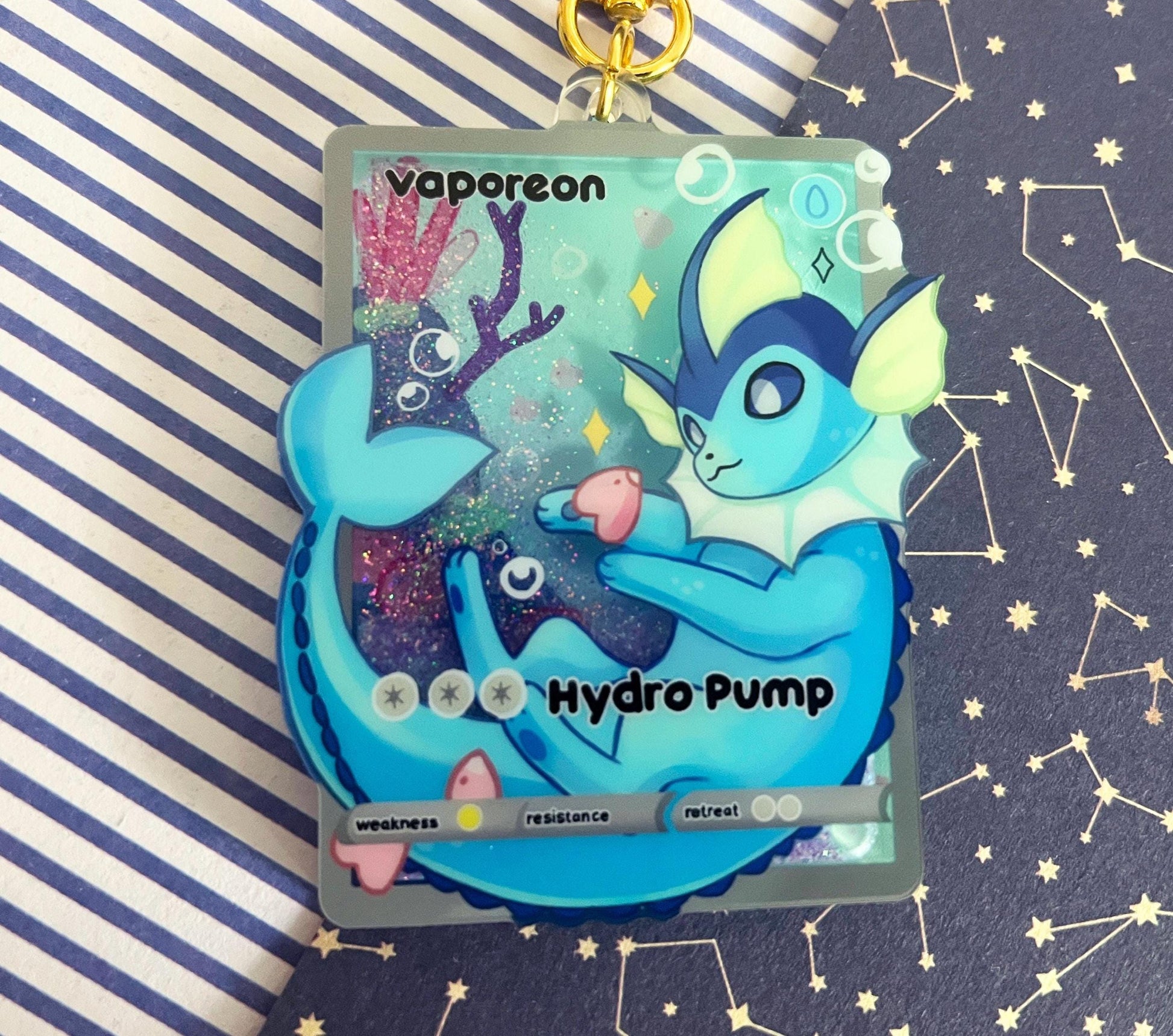 eeveelution liquid glitter charms vaporeon / double sided / 8 cm /