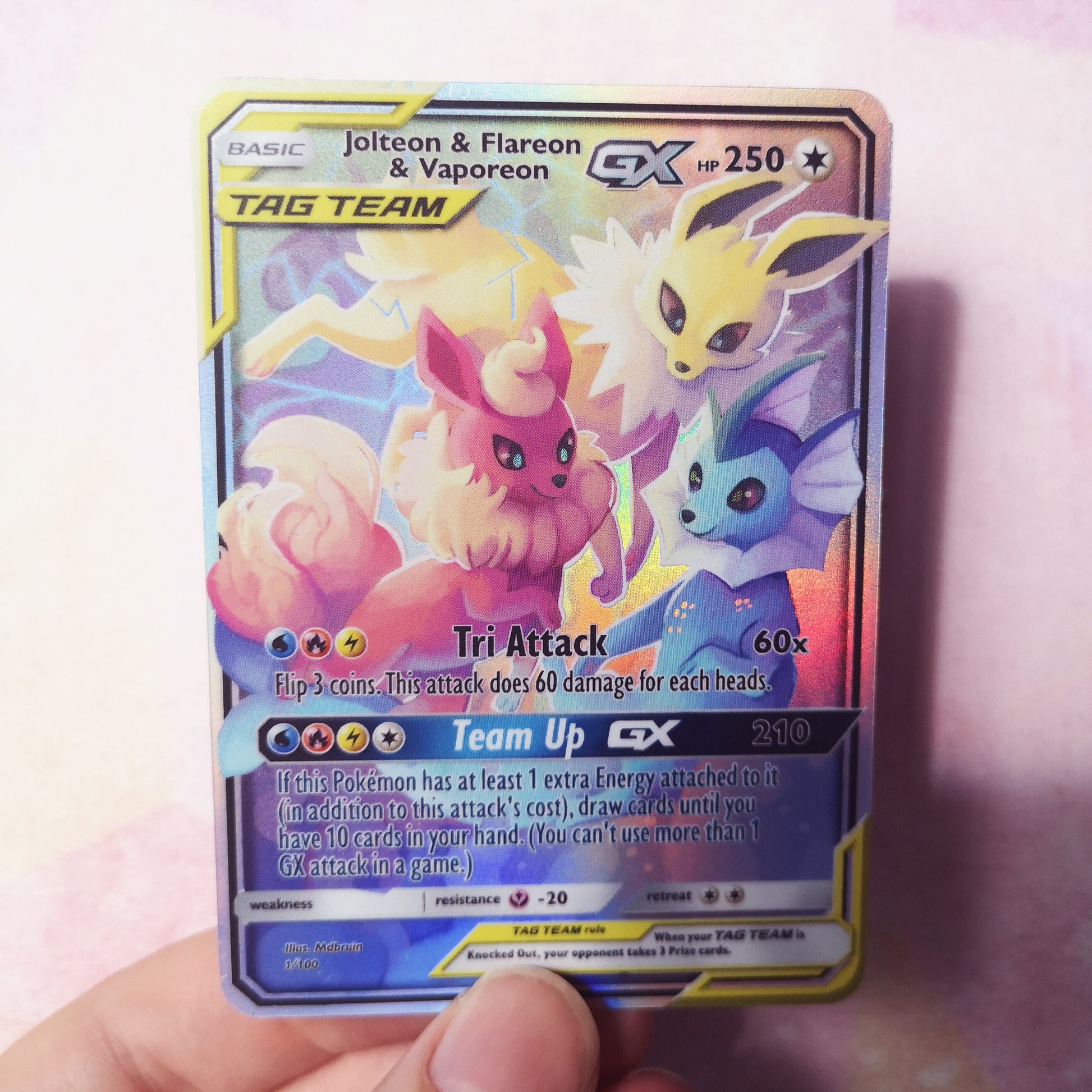 Holo eeveelution vaporeon, jolteon and flareon / Custom holographic Pokémon card / tag team card